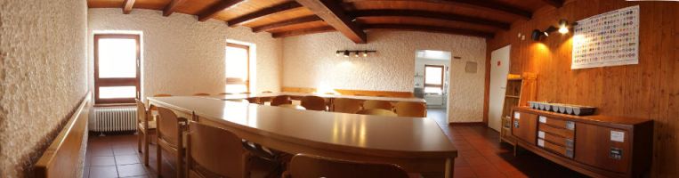 Der Schulungsraum in St. Georg grenzt direkt an die Küche und lässt sich deswegen neben seiner Funktion als Arbeitszimmer, auch gut als Essraum nutzen. Direkt angeschlossen an den Schulungsraum ist das Kaminzimmer. Durch den offenen Kamin und gemütliche Sessel kann man hier schöne Stunden verbringen. Der Freizeitraum im Dachgeschoss von St. Georg bietet viel Platz zum Gestalten. Entweder kann man an Tischen und Stühlen zusammensitzen, oder sich auf dem Teppichboden austoben. Auch von hier aus hat man durch die Dachfenster einen schönen Blick ins Tal.