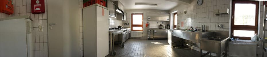 Die Küche in St. Georg ist, wie alle Küchen im Baden-Powell-Haus, großzügig ausgestattet mit einer Kaffeemaschine, einem Wasserkocher, Kuchenformen, Auflaufformen, Servierplatten und vielem mehr. Neben einer Spülmaschine gibt es einen vierflammigen Gasherd zum Kochen und einen Gasbackofen.